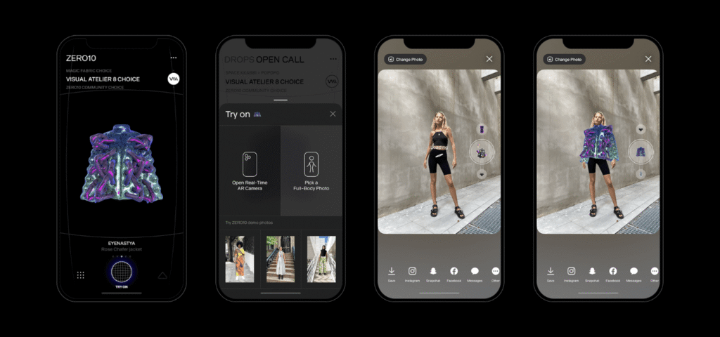 Tribute Brand merges the two worlds, embedding NFC chips and AR layers in real clothes. Seen through your phone, they shimmer, distort, or glow — a literal fashion filter.