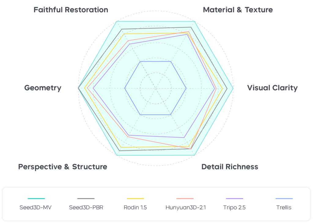 Rigorous evaluations detailed in the model’s arXiv paper highlight its superiority over existing 3B-parameter rivals. Key metrics demonstrate Seed3D 1.0’s edge in fidelity and usability: