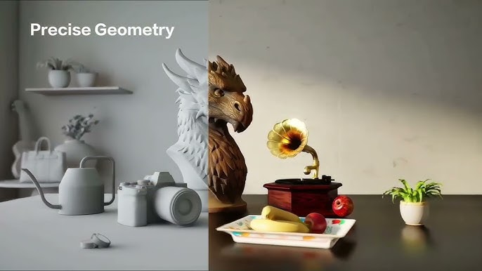 - Geometry Prediction: The DiT core generates high-resolution meshes, capturing intricate details such as surface normals and curvature for lifelike forms.